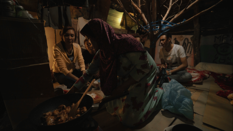 H is a migrant worker from Indonesia like wandering around and he already ran away for over a year. He built a temporary hut on his ex-employer’s farmland. He took his friend R in the shelter who ran away from metal processing factory and almost got caught when working in a tea plantation. Because of that R rarely steps outside the hut. Tonight, H receives a phone call from his friend T. She said she runs away from fruit processing factory and will come over with her friend B who also ran away from the auto-parts factory. Later the night, run away housekeeper E and D who run away from screw factory appear in the hut. In the same night, the hut of H already becomes well-known.